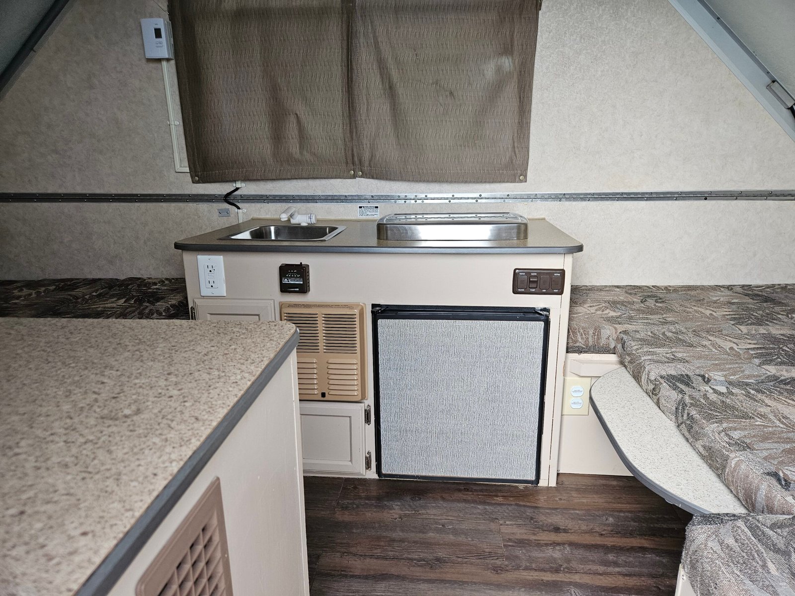 Réfrigérateur, poêle, lavabo et chauffage